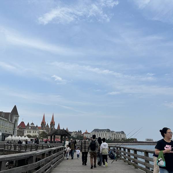 位于烟台滨海路的海昌渔人码头是外地游客游览烟台景点的好地方,这里环境优美、有西式建筑和滨海风光...位于烟台滨海路的海昌渔人码头是外地游客游览烟台景点的好地方,这里环境优美、有西式建筑和滨海风光,最近又围绕整个码头修了一条木制步道。
