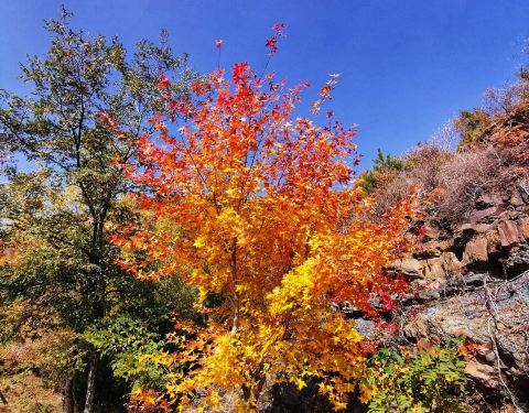太值得去的景区,美景美不胜收草深树茂空气清新。蓝天白云加上山峦起伏秋天簇簇红叶宛如世外桃园,望着山间曲径美景不竟让人想起杜牧的“远上寒山石径斜,白云生处有人家,停车坐爱枫林晚,霜叶红于二月花。"