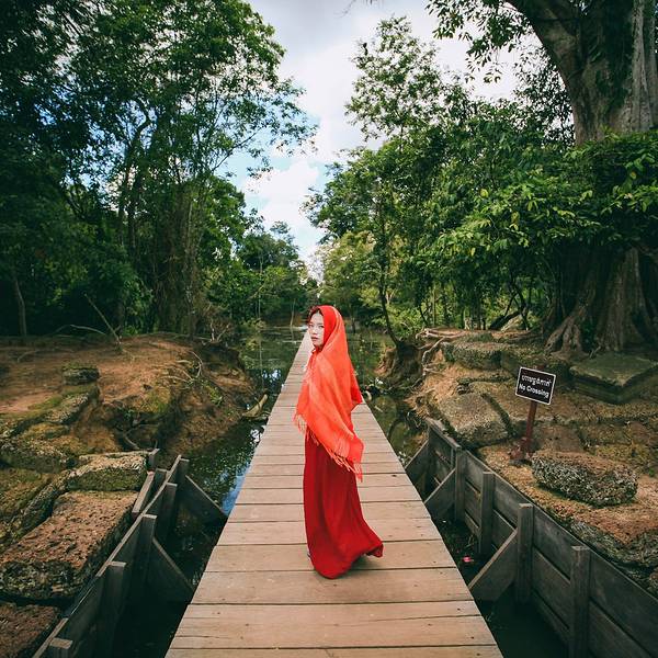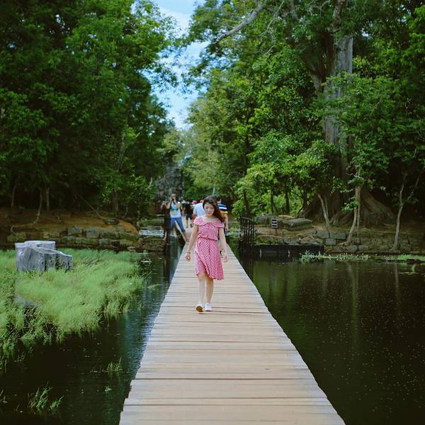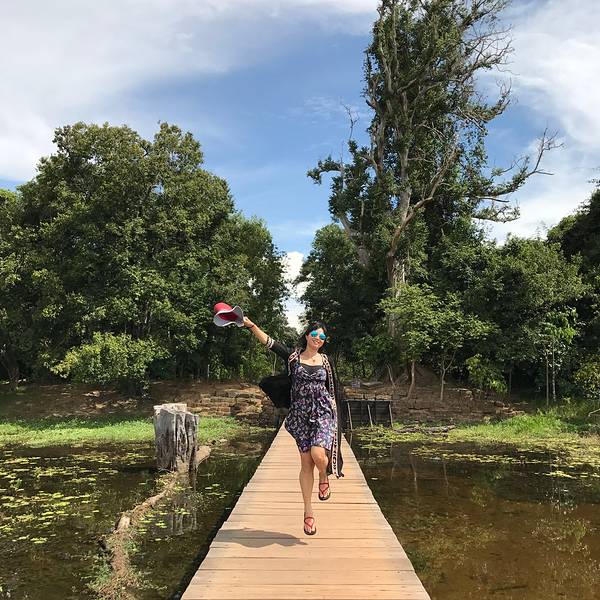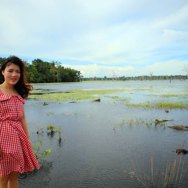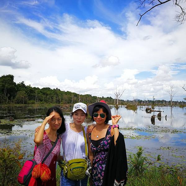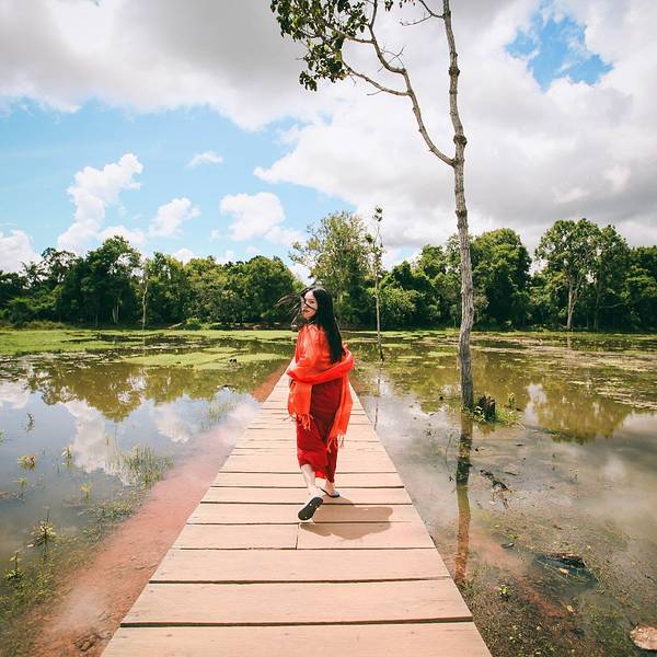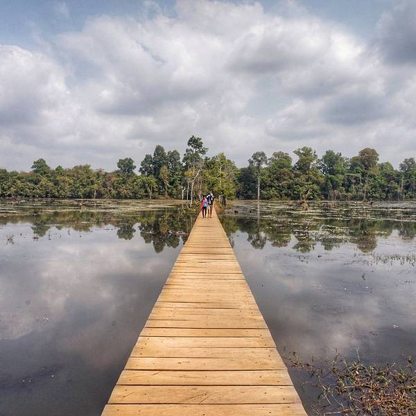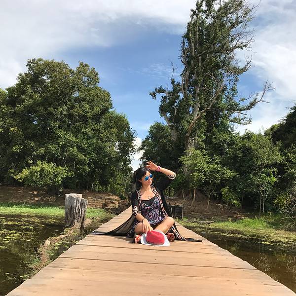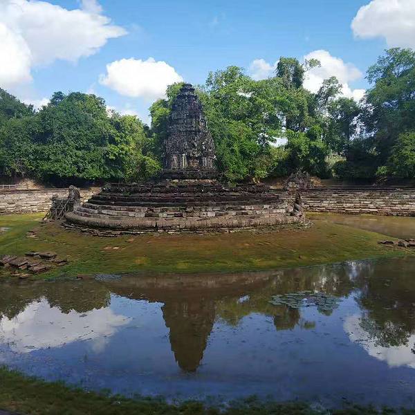 没走几步就到了龙蟠水池,讲真的我上次来,对龙蟠水池的印象就是这什么鬼,然而这次大不同的是走进龙...从圣剑寺东门出来,就看到对面云彩丰富的天空倒映在湖中,如同油画一般没走几步就到了龙蟠水池,讲真的我上次来,对龙蟠水池的印象就是这什么鬼,然而这次大不同的是走进龙蟠水池门口那条长长的栈道真是美哭了一...从圣剑寺东门出来,就看到对面云彩丰富的天空倒映在湖中,如同油画一般没走几步就到了龙蟠水池,讲真的我上次来,对龙蟠水池的印象就是这什么鬼,然而这次大不同的是走进龙蟠水池门口那条长长的栈道真是美哭了一来水中的枯木倒映在水里,别有一份趣味,加之当天丰富的云彩,锦上添花顺便说说天气,11月应该已经出了雨季,然而我们这一行4天,除了第一天艳阳高照,其他三天都是时阴时雨。好在东南亚的雨水都来得急也去的急,既能给炎热的天气降温也能带来丰富的云彩。至于坏处么,云层一厚,日出日落就悲剧了出龙蟠水池,顺时针就能到塔逊。塔逊是个很小巧的寺庙,寺门被一棵大树覆盖缠绕,但如果你去过塔布隆,那塔逊就显得有点微不足道了胜在人少,取个小景也能拍美照!和我之前担心的不同,一袭白衣也很适合小吴哥,尤其墙面青苔比较多时简单看了一下我们就出发去今天的最后一个景点,比粒寺和东梅奔, 因为这两座寺庙也比较高,所以原本打算来看日落的,结果天公不作美,只也能来看看神兽了。比粒寺和东梅奔非常相似,都是塔山建筑,因为用了红色砂岩和红砖,所以颜色很鲜艳。如果时间紧,参观一个就够了。 比粒寺据说原先是古代皇族火化变身为神的神殿,如今已经非常落败,除了神兽们仍然神采奕奕的坚守着岗位两座寺的墙体上都有很多孔,小伙伴说一定是以前打仗的时候被枪打的……后来听人介绍才知道可能是以前拿来镶嵌珠宝的!没文化真可怕! 展开