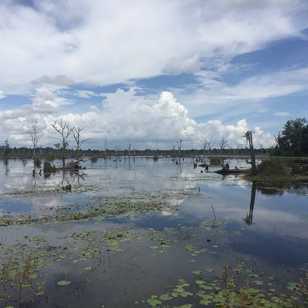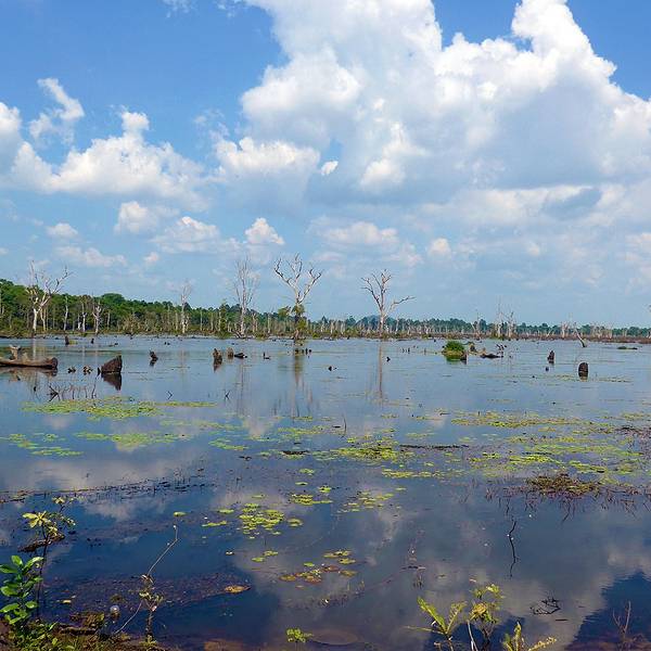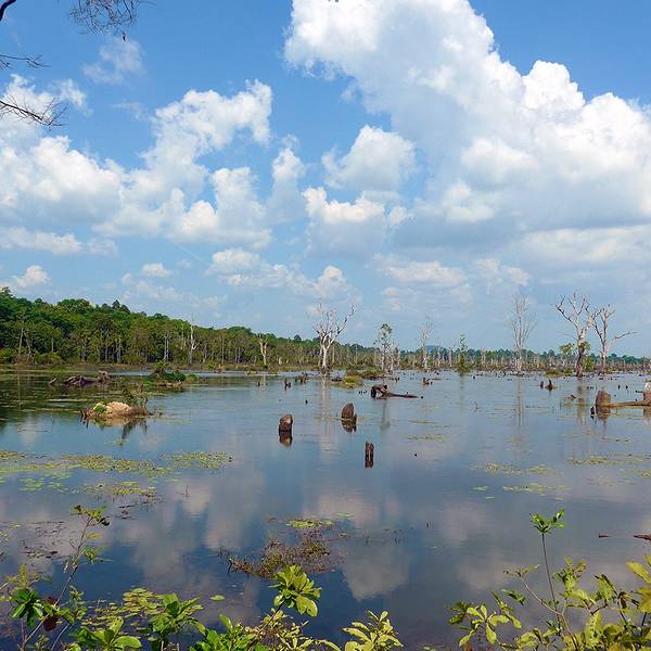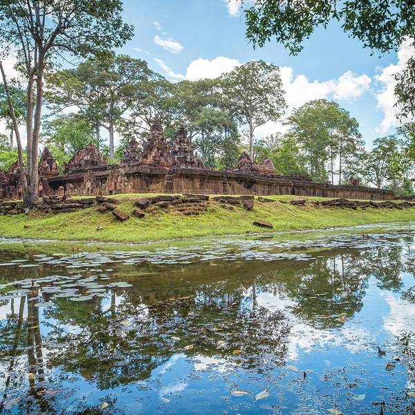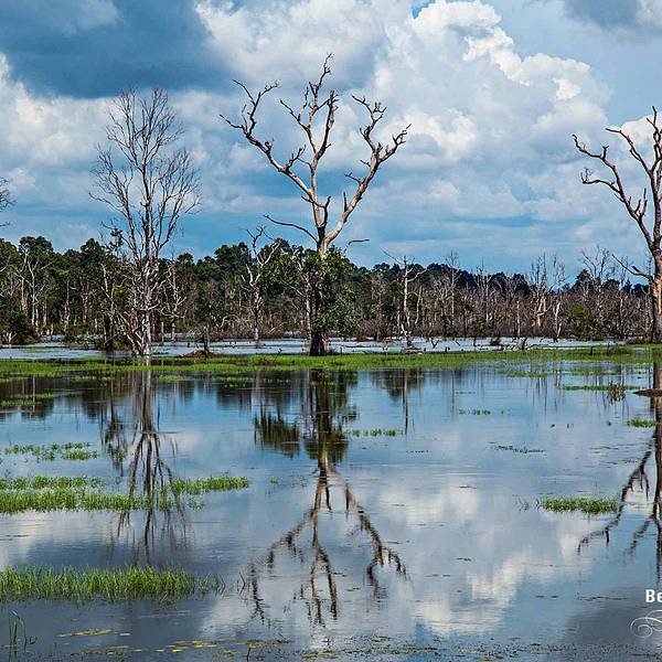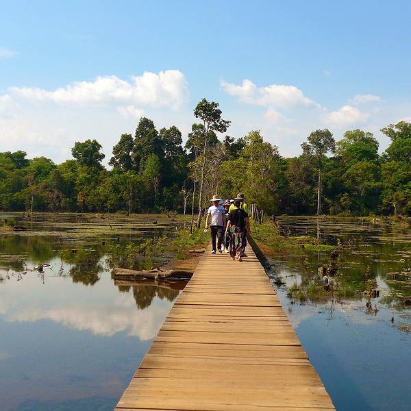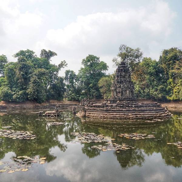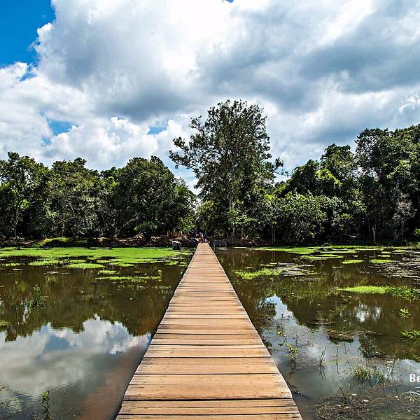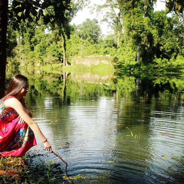 没走几步就到了龙蟠水池,讲真的我上次来,对龙蟠水池的印象就是这什么鬼,然而这次大不同的是走进龙...从圣剑寺东门出来,就看到对面云彩丰富的天空倒映在湖中,如同油画一般没走几步就到了龙蟠水池,讲真的我上次来,对龙蟠水池的印象就是这什么鬼,然而这次大不同的是走进龙蟠水池门口那条长长的栈道真是美哭了一...从圣剑寺东门出来,就看到对面云彩丰富的天空倒映在湖中,如同油画一般没走几步就到了龙蟠水池,讲真的我上次来,对龙蟠水池的印象就是这什么鬼,然而这次大不同的是走进龙蟠水池门口那条长长的栈道真是美哭了一来水中的枯木倒映在水里,别有一份趣味,加之当天丰富的云彩,锦上添花顺便说说天气,11月应该已经出了雨季,然而我们这一行4天,除了第一天艳阳高照,其他三天都是时阴时雨。好在东南亚的雨水都来得急也去的急,既能给炎热的天气降温也能带来丰富的云彩。至于坏处么,云层一厚,日出日落就悲剧了出龙蟠水池,顺时针就能到塔逊。塔逊是个很小巧的寺庙,寺门被一棵大树覆盖缠绕,但如果你去过塔布隆,那塔逊就显得有点微不足道了胜在人少,取个小景也能拍美照!和我之前担心的不同,一袭白衣也很适合小吴哥,尤其墙面青苔比较多时简单看了一下我们就出发去今天的最后一个景点,比粒寺和东梅奔, 因为这两座寺庙也比较高,所以原本打算来看日落的,结果天公不作美,只也能来看看神兽了。比粒寺和东梅奔非常相似,都是塔山建筑,因为用了红色砂岩和红砖,所以颜色很鲜艳。如果时间紧,参观一个就够了。 比粒寺据说原先是古代皇族火化变身为神的神殿,如今已经非常落败,除了神兽们仍然神采奕奕的坚守着岗位两座寺的墙体上都有很多孔,小伙伴说一定是以前打仗的时候被枪打的……后来听人介绍才知道可能是以前拿来镶嵌珠宝的!没文化真可怕! 展开