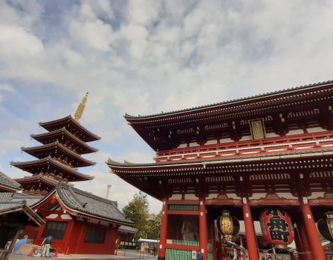 红柱梁,青瓦顶,两个金刚力士像分列左右,中间三孔挂着三个大灯笼,显得特别威风这是仲见世商业街通往清水寺的山门,其规模之宏大,甚至堪比后方的清水寺。红柱梁,青瓦顶,两个金刚力士像分列左右,中间三孔挂着三个大灯笼,显得特别威风。由于门楣上挂有“浅草寺”牌匾,很多游客在此打卡拍...这是仲见世商业街通往清水寺的山门,其规模之宏大,甚至堪比后方的清水寺。红柱梁,青瓦顶,两个金刚力士像分列左右,中间三孔挂着三个大灯笼,显得特别威风。由于门楣上挂有“浅草寺”牌匾,很多游客在此打卡拍照。穿过宝藏门,看到其后方两侧挂有两个超大草鞋,也很是有趣。 展开