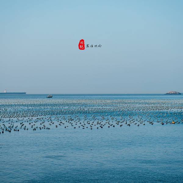 蓝海牧场位于嵊泗县枸杞乡,是一片1.2万亩的蓝海牧场,白色的浮标连接着苗绳,如同一张巨网布满海面。