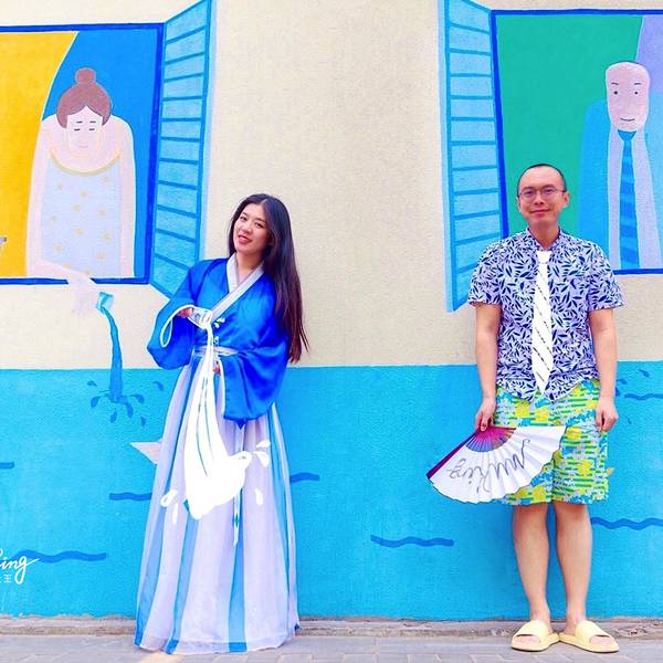 5⃣️窗边男孩女孩:马岭二横巷和青龙街交叉口(与3⃣️4⃣️手绘图案隔了条街)。