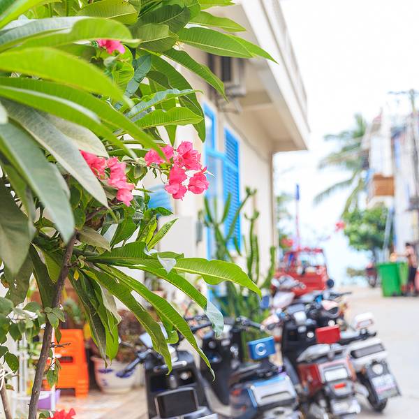 晚上入住的是距离机场8.2km的天涯镇内的民宿。民宿老板娘是个很健谈的人,任何关于三亚的游玩、美食、交通问题都可以直接问她。这个民宿也是今年刚开的,大床房才160元/晚,风格是我喜欢的ins风,性价比极高。办理完入驻后,我们就随便在小镇里逛了逛。