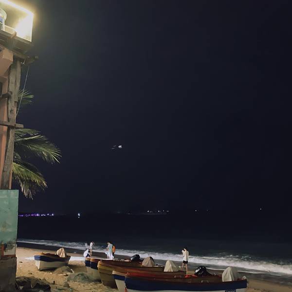 小渔村晚上9点多依然很热闹。本地村民有跳舞、打篮球的,也有三四个人一起搓麻将。慢节奏的生活,弥漫在海风中~夜晚,在海边走走,吹吹海风~我们在海边的一家音乐餐厅里,吃了到海南后的第一顿海鲜~160元/斤的皮皮虾,价格是有点贵。不过皮皮虾外焦里内,味道是非常赞的,又伴随着阵阵海风和海浪声,已经开始期待接下来的行程了!天涯镇总体来说是个未完全商业化的小渔村,住在这里可以体验三亚渔民的生活。整个村子的建筑风格也是蓝白相间,适合拍照。有兴趣的,也可以跟当地渔民下海捕鱼。我就特别后悔,到第3天要离开时,才知道可以体验捕鱼。
