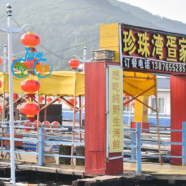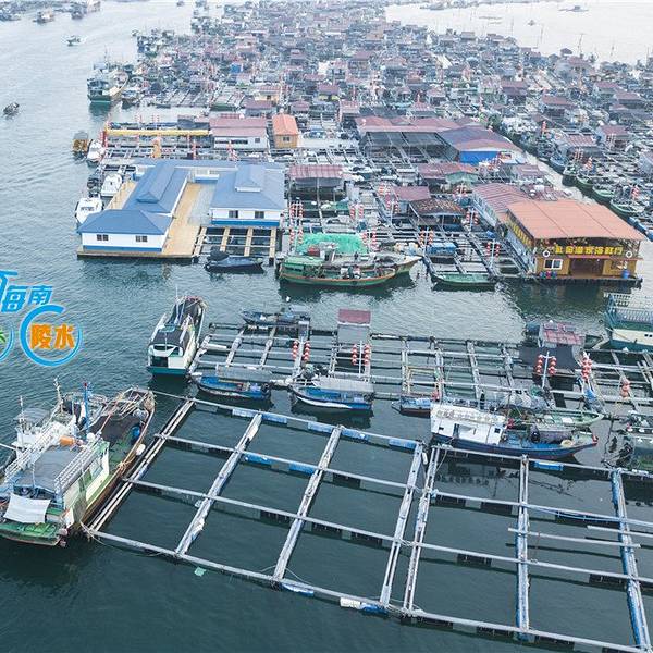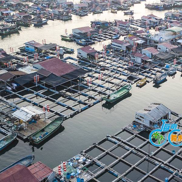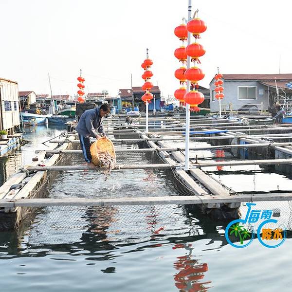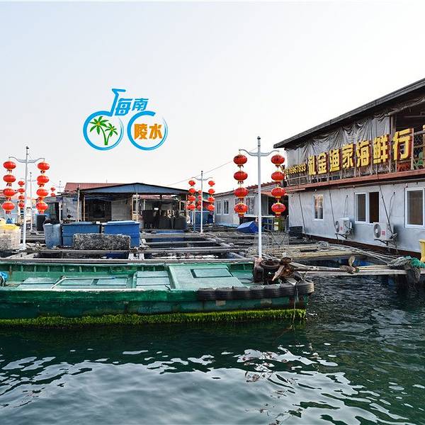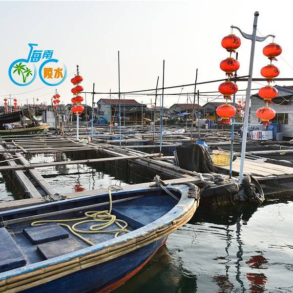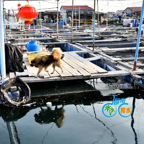 是个很大且封闭的内海,狭窄的出入口一边是新村镇另一边是南湾村,著名的南湾猴岛就在南湾村的山上,渔港在新村镇这一边。新村港是个令人亢奋的地方,渔民从小舢板往岸上的卡车装大条的石斑鱼,接着去看码头边停泊的渔船。而且靠近内海出口的深水区密布网箱养殖的渔排,这就是著名的疍(音dan)家渔排,那些养殖户为了方便和看护,在自家的渔排上搭建活动板房,也安家在渔排上,有的还搭个遮阳棚开起海鲜餐馆。在渔排上吃海鲜,直接到网箱里点,直观便捷,疍家渔排这样的餐馆很多。