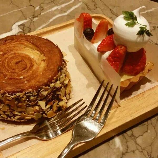 辣薯条 草莓酥 松露汁野菌意粉 草莓挞 牛角包 蓝莓芝士饼