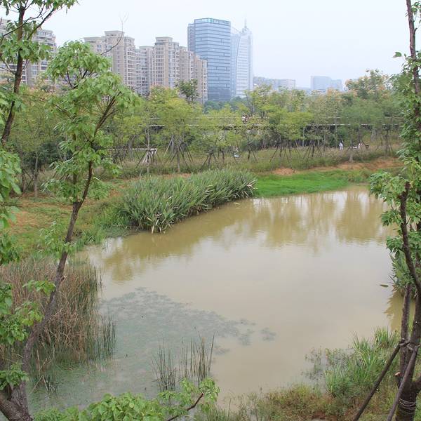 衢州鹿鸣山公园,处于拥有250万人口的衢州市的新城中心(商业、行政中心)之核心地段,是高密度城市建筑之中的一片“绿洲”。设计师将具有生产性的农业景观与低维护的乡土植物融于景观设计之中,创造出一个丰产而美丽的城市公园。这里的红砂岩体、自然植被(包括野草和灌丛)、原有的农田水系、原有的河岸树木等均完整保留。场地的文化景观遗址,如驿道凉亭、灌溉设施也都完整的保存下来,并对它们进行修复作为场地的文化记忆。这些自然和文化特色为景观创造出丰富的意义和特质,多层次的设计语言被巧妙融入其中。