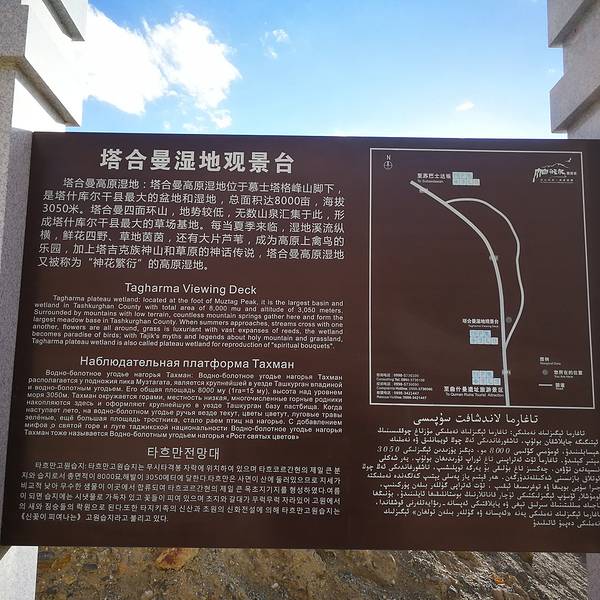 塔合曼高原湿地四面环山,无数山泉汇聚于此,形成塔什库尔干县最大的草场基地。山顶白雪皑皑,中间是一块巨大的盆地和湿地,面积达8000多亩,海拔为3050米,是塔什库尔干县最大的盆地和湿地,每当夏季来临,湿地溪流纵横,鲜花四野,草地茵茵,还有大片芦苇,成为高原上禽鸟的乐园,加上塔吉克族神山和草原的神话传说,塔合曼高原湿地又被称为“神花繁衍”的高原湿地。而旁边的慕士塔格峰海拔高达7509米,号称“冰山之父”。每当夏季来临,湿地溪流纵横,鲜花四野,绿草茵茵,芦苇丛丛,苑如人间仙境。