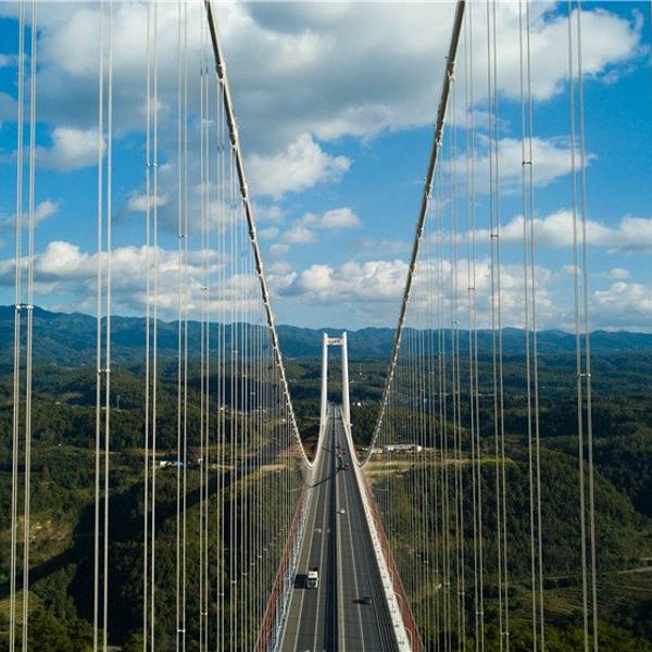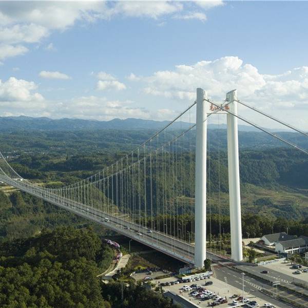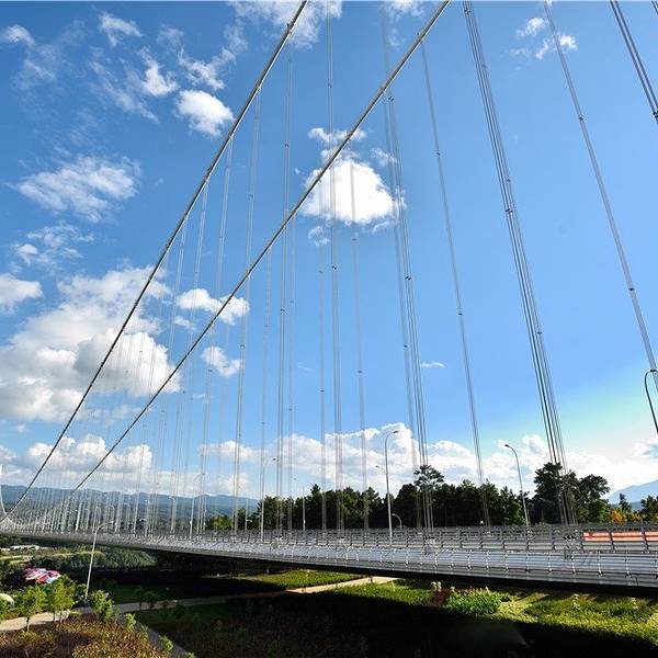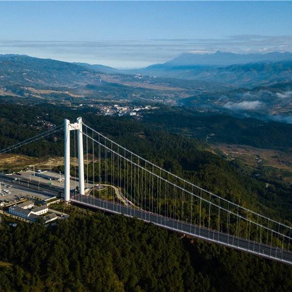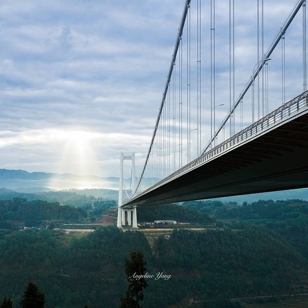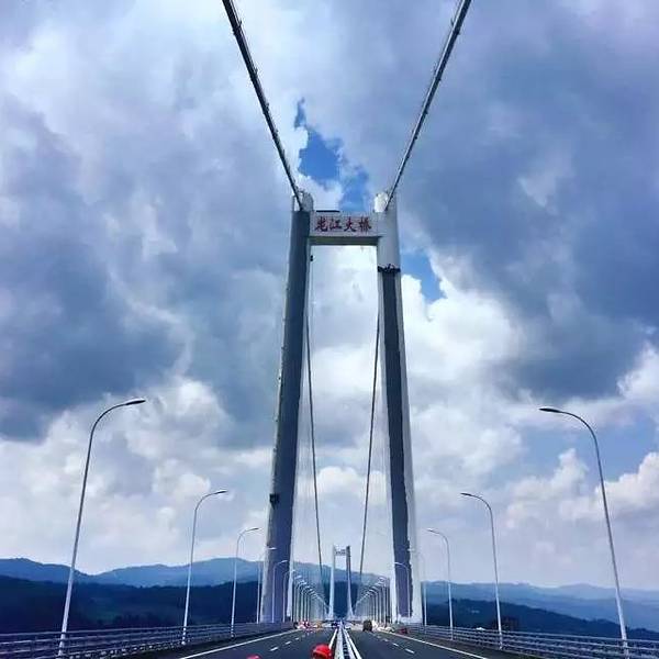 云南龙江特大桥位于保山市,是云南省首座特大跨径钢箱梁悬索桥,也是亚洲山区最大跨径的钢箱梁悬索桥。