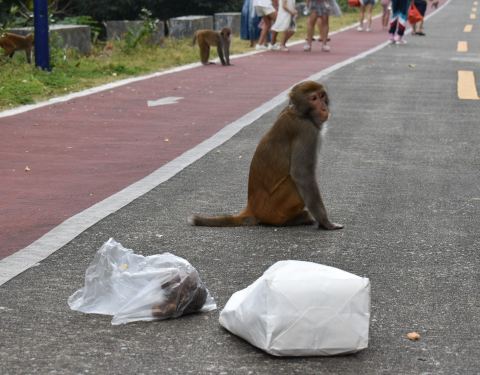 不爱面包,对花生水果比较感兴趣,保持安全距离情况下,猴子们也是非常可爱有趣