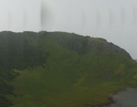 到了济州岛哪能不到汉拿山!再晚也要到门口遛一圈啊!到城板岳,天色很暗了,这里海拔也有1000多米,很冷,已经停止卖票禁止进山了。居然看到两个北京妞,披着雨衣,拄着拐棍,缓慢地走出大门。牛啊!她们一早到的,往返一天,爬到了山顶。我借她们的拐棍到此一游,哈哈。