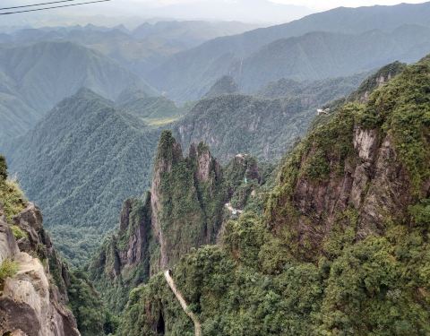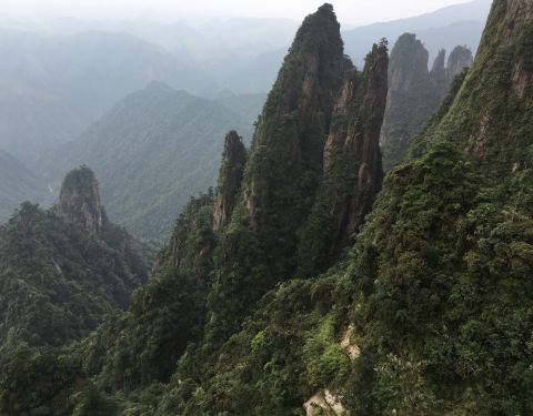 莽山里的景区之一,在莽山景区门口坐观光小巴,约30分钟可到天台山下的停车场,然后从左边的路步行上山,25分钟左右可以到达万寿塔,再往前走十来分钟就到小天台了。虽然前面爬楼梯时风景一般,但到了这里就可以体会什么一览众山小了。原路返回到万寿塔后,可以走右边的路继续登高,然后从这里下山,比左边的上山路略远一点。