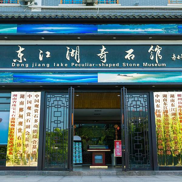 东江湖奇石馆位于湖南省资兴市三湘四水东江湖旅游文化街。该馆于2012年9月份竣工,总面积6500多平方米,集科普教育、展示展览、鉴别鉴赏和学习培训、交易拍卖五个功能于一体。馆内收藏了岩石类观赏石、古生物化石、玛瑙玉石、矿物晶体等奇石及标本1万多种,共300多个品种。奇石馆以湖南奇石为主体,集合了国内外非常好的一些奇石包括一些世界级和中国级的绝品和珍品。 东江湖奇石馆大中小奇石配置科学,将视觉感受与文化底蕴相结合,与三湘四水的概念相融合。东江湖奇石馆着眼奇石文化与旅游文化的融合发展使人们在旅游中欣赏奇石文化,通过奇石文化推进旅游文化的发展,打造中国一流的奇石馆。