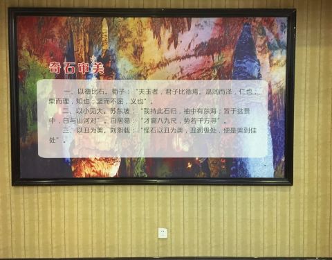 坦白说,如果不是住奇石酒店,也不会有免费的参加奇石馆的票,这个地方估计都是跟团旅游的团队才来参观。 位于租住的酒店隔壁,问前台就可以领取门票,票价50元。门口验票的妹妹整张收回,估计是循环使用。 奇石馆分两层楼,一楼是石头,二楼是水晶。 有小姐姐做讲解,讲解内容有点孤单。我这个散客立马跟上讲解的队伍中。到了最后有三个买卖场,没有什么兴趣立马溜走!