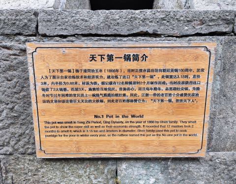 其实这个景点叫:亦昌冶坊~ 因为景区内,有个超大的锅,号称天下第一锅,所以就有了“天下第一锅”这个点评~呵呵~ 去的时候已经是傍晚了,游客已经不是很多了~ 也是粗略看了一下这个景点,印象最深的就是院子利的一口大锅~ 当时院子也没什么人了~ 这是个纯手工工坊,遗憾没有看到工作人员纯手工制作的过程~ 环境还不错,地方挺宽敞的~