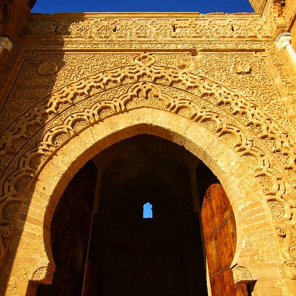 舍拉废墟,公元前二世纪,曾经是罗马帝国的城堡,与梅克内斯附近的瓦卢比利斯齐名,昔日繁忙的港口要塞,后因罗马帝国衰败撤离荒废了几世纪,直到13世纪,梅里尼德王朝将原有的罗马古城扩建修缮成皇家陵园,原有的罗马城门改造了如今看到的阿拉伯式圆拱门,黑苏丹”阿布哈桑及其爱妃死后均葬于陵内,1775年一场以里斯本为震中的著名大地震中被夷为废墟。