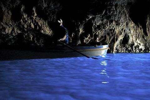 在阳光明媚而且潮位合适的时候,游客就可以几个人一组,坐上小舢板,由船夫划船进入蓝洞后,回头向...蓝洞是意大利那不勒斯地区卡普里岛上著名的自然景观。通常乘船到卡普里岛的码头后,根据潮汐的水位算好时间换乘小型游艇,沿小岛逆时针环行至阿纳卡普里镇海岸下的蓝洞外。也可以乘坐当地公交车,直接到蓝洞上方...蓝洞是意大利那不勒斯地区卡普里岛上著名的自然景观。通常乘船到卡普里岛的码头后,根据潮汐的水位算好时间换乘小型游艇,沿小岛逆时针环行至阿纳卡普里镇海岸下的蓝洞外。也可以乘坐当地公交车,直接到蓝洞上方的公路上,然后沿石阶走到蓝洞旁边的岸边。 在阳光明媚而且潮位合适的时候,游客就可以几个人一组,坐上小舢板,由船夫划船进入蓝洞后,回头向洞口张望时,可以看到洞口下方的海水呈现出迷人的蓝色,散发出美丽的光芒。 如果潮汐水位太高,海水淹没洞口,游客自然无法通过小舢板进出蓝洞。反之潮汐水位太低,洞口露出部分太高,也会影响洞内蓝光的效果。 展开