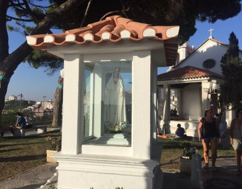 这个山顶观景台,因为有一个圣母像在这里,所以叫做圣母观景台,这里能够360度的看到里斯本老城的全貌,所以有大量的游客会来这里观景。