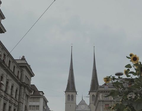 ...教堂,教堂的标志性的特征就是两个高耸的哥特式的尖塔,塔身是淡黄色的,塔顶是黑褐色的,很有区别度这是整个卢塞恩最重要的教堂,教堂的标志性的特征就是两个高耸的哥特式的尖塔,塔身是淡黄色的,塔顶是黑褐色的,很有区别度。挺漂亮。