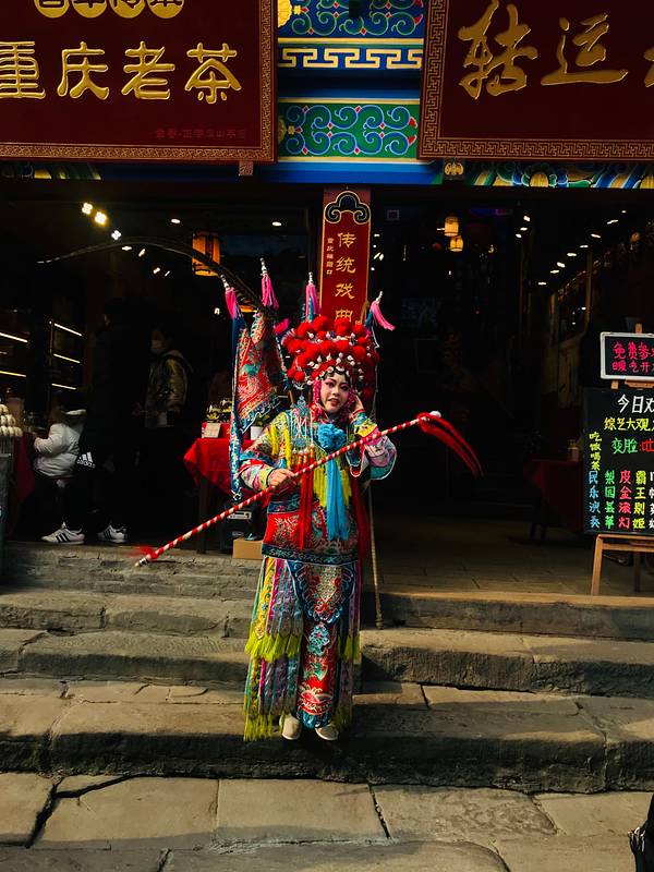 可以去感受一下川剧的魅力在磁器口主街上的转运楼是磁器口古镇的一个戏楼景点,门面不大,但进去后院子还是不小的。里面可以参观拍照,吃饭喝茶,每天都有几场戏曲表演,表演的节目还是很丰富的,特别是变脸。可以去感受一下川剧的魅力。