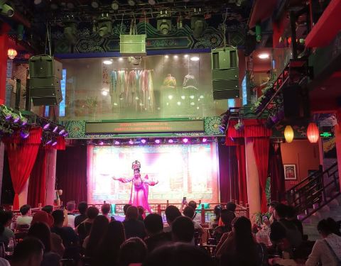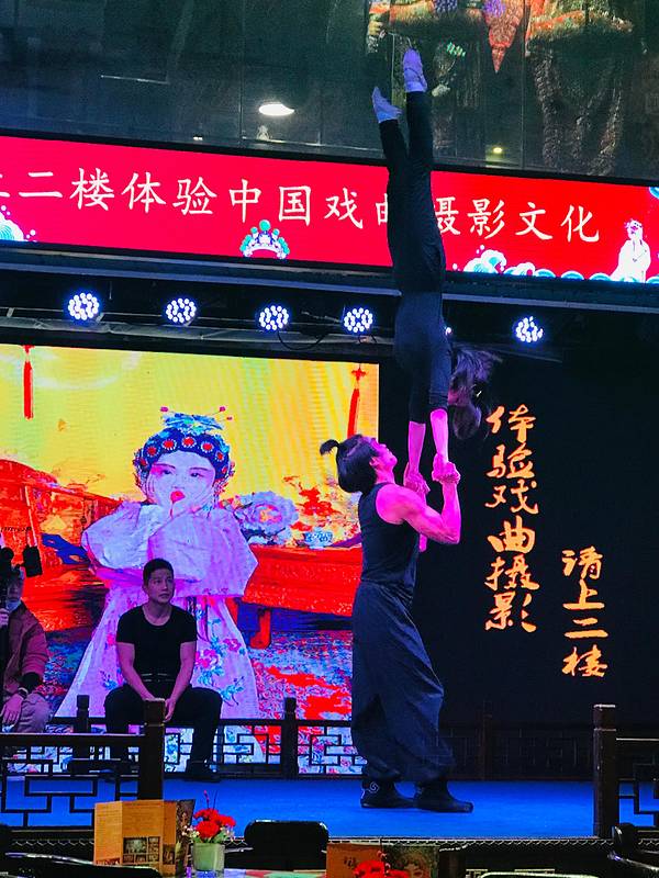 第二个节目是两个人摸黑打架,也不好看。这里还能拍写真,如果时间充足的话还是可以体验一下的买完麻花之后,时间还早,就想着找个地方喝点茶,看看节目。于是就来了这家“转运楼”,门口好像写的是20块钱一位吧,但是进去之后小姐姐告诉我们,如果要看表演就得每人加50,她们现在是有一个套餐199,送一壶茶...买完麻花之后,时间还早,就想着找个地方喝点茶,看看节目。于是就来了这家“转运楼”,门口好像写的是20块钱一位吧,但是进去之后小姐姐告诉我们,如果要看表演就得每人加50,她们现在是有一个套餐199,送一壶茶和一个干果拼盘,还能看表演,是比较划算的。我以为是这样的盖碗茶呢,结果等我付完钱,就把这个杯子给我收走了,当时我都愣了,我就是想用这个杯子喝茶呀,哈哈哈。这个节目,额,怎么评价呢,我们进来的时候已经开始表演了,第一个唱的好像是杨家将的故事,没听懂。第二个节目是两个人摸黑打架,也不好看。然后主持人变了几个很侮辱我智商的魔术,没啥笑点。