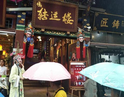 但由于通道狭窄,进出的游客众多,往往把走道堵塞着,感受是一般为什么叫转运楼就不知道它的典故,反正这里是表演川剧的地方。进去拍照是免费的,而且还可以跟穿了戏服的演员拍照,里面看戏是要收费的。但由于通道狭窄,进出的游客众多,往往把走道堵塞着,感受是一般。
