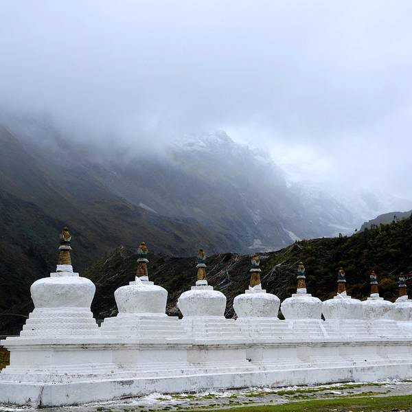 高耸入云的雪山,气势恢宏的冰川,还有环绕着的草原,而且星星点点散落着几只牦牛,雪峰、寺庙、转经的老人,在云雾中时隐时现。嘎瓦龙冰川的美,就在于它们能跟农田、油菜花、居民、农家亲密地组合在一起,还有在冰川构造和差别消融的双重作用下,在冰川上形成了琳琅满目千奇百怪的热熔喀斯特景观,世外桃源般的景色,让人流连忘返,身心向往。