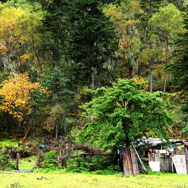 早上起来有点下雨,一如林区常有的天气。在早餐时碰见北京游客说起要去墨脱,问过他们的租车司机小伙,说是去墨脱的路上有个雪山叫嘎哇龙离县城大约23公里,本来我们计划要去岗乡,方向都在扎墨公路上,就打算一并游览。沿着扎墨公路往墨脱方向开了不到2公里路边有一个岔道,还有一个中国最美森林的指示牌,这就是去岗乡的岔路口,我们继续前行先去嘎瓦龙。沿着扎墨公路走,海拔慢慢升高,雪山、云雾、瀑布、葱茂的树林,在雨雾中梦幻般的独自美丽着。树枝上的松萝和山坡上的红石滩默默的坚守着这块净土。一块宽阔的草地上几间木板房子散落在雪山脚下的树木之中,纯粹的颜色,纯粹的雨雾,是那样和谐静谧。富有特色的木篱笆、木板屋,勾画了一幅恬静、优美的“山居图”。大约10点到达嘎瓦龙雪山,此时雨下大了气温很低,雾气迷蒙白茫茫一片,稍作停留我们就返回去岗乡了。尽管遇到这样的雨天,我们还是很不舍这条扎墨公路的每一个景色。草丛里的蘑菇、枯草、野果子以及树上的松萝,我想记录下这些让人回忆的所有元素。我们只走了一小段扎墨公路都觉得沿途的景色简直美翻了,从雪山到原始森林,从湍急河流到飞流瀑布,从悬崖边上到高原隧道以及雾霭笼罩下的雪山,每一步都惊心动魄,每一眼都美不胜收。墨脱是“隐藏在云雾、雪山、密林中的人间绝域”、也是“地球上的最后秘境”,几乎每个真正热爱西藏的人都藏了个墨脱梦。 许多旅人的心中,墨脱圣地是人生旅行的精彩章节,这里的原始,这里的风景,这里的体验,这里的感受,是世界上任何地方都无法复制的。 我也一样。 我会再来……