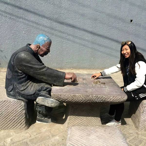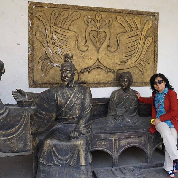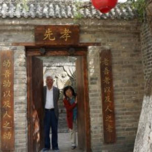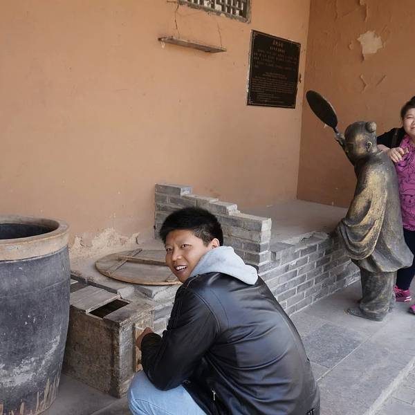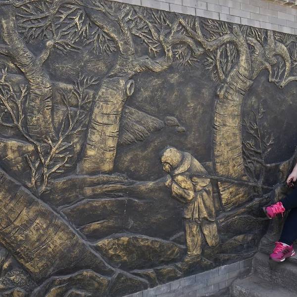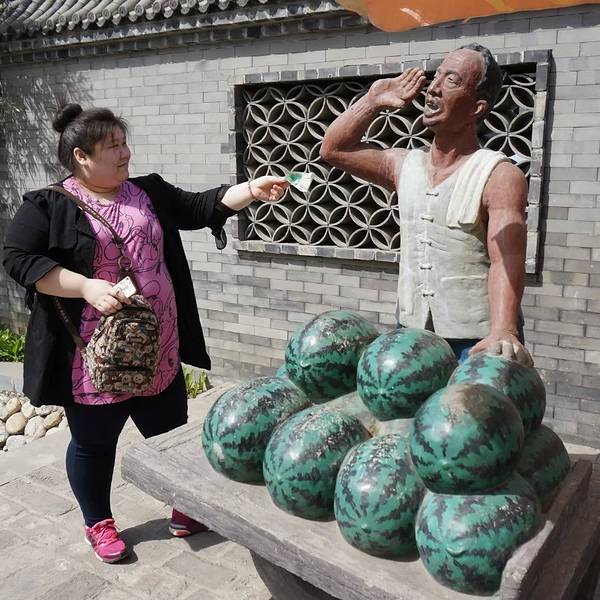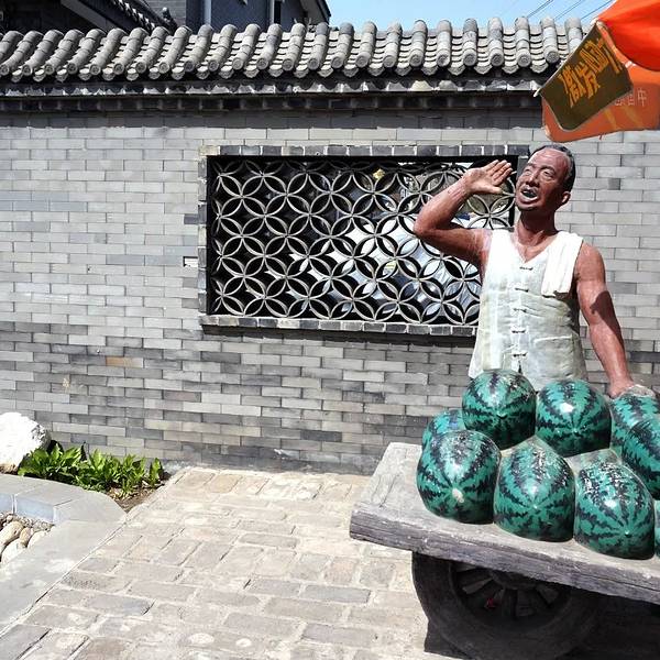 燕城古街首先映入眼帘的是高大的牌楼,上写“燕都”二字。据导游介绍,这里相传是辽代萧太后赏花的行宫,因萧太后乳名叫肖燕燕,因此后人将此处称为“燕城”。穿过牌楼,是“雁栖池话”景观。一池碧水中矗立着木制水车,因为水很干净,所以有不少游人带着孩子在水中蹚水嬉戏。街道两边的外墙以青砖、灰瓦、白墙为主,配合着木制小屋和石头小屋,充满了北方农村的风土气息。街中商铺林立,铁器坊、工艺品商店等,吸引众多游人观赏选购。走了没一会儿,我被一面“二十四孝”文化墙吸引了。这段四百多米长的文化墙,以浮雕壁画的形式,图文并茂地介绍了二十四孝的历史典故,使人看后既增长了知识,又体会到了孝道的重要性。