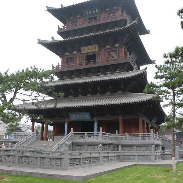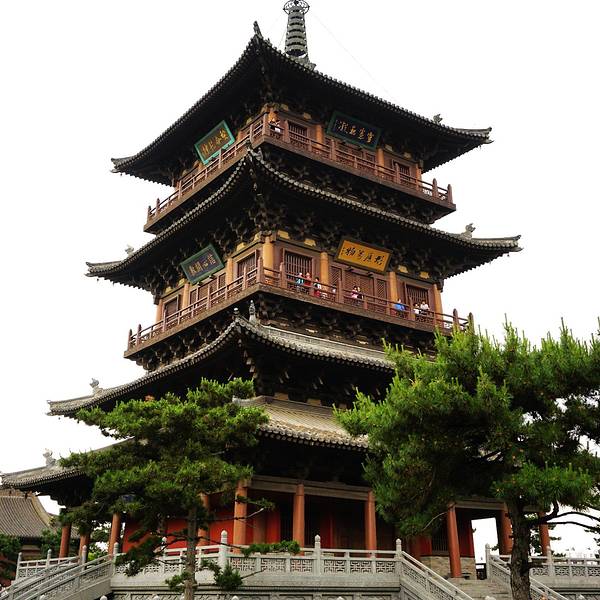 华严宝塔位于华严寺内,是当代新建的一座木塔,纯木榫卯结构,为方形四檐木塔,木塔采用古制,通高43米。