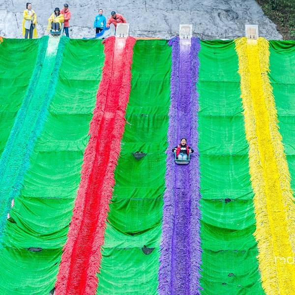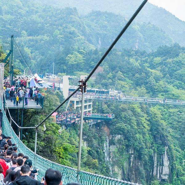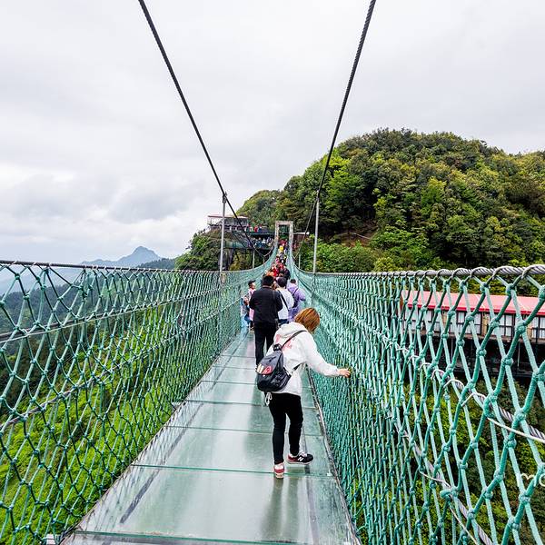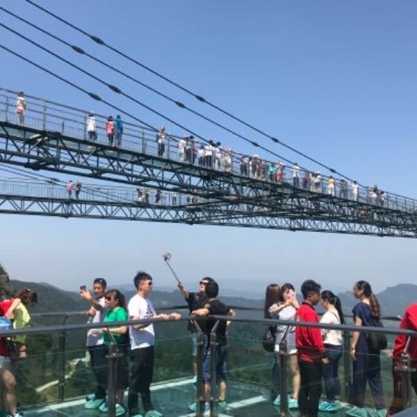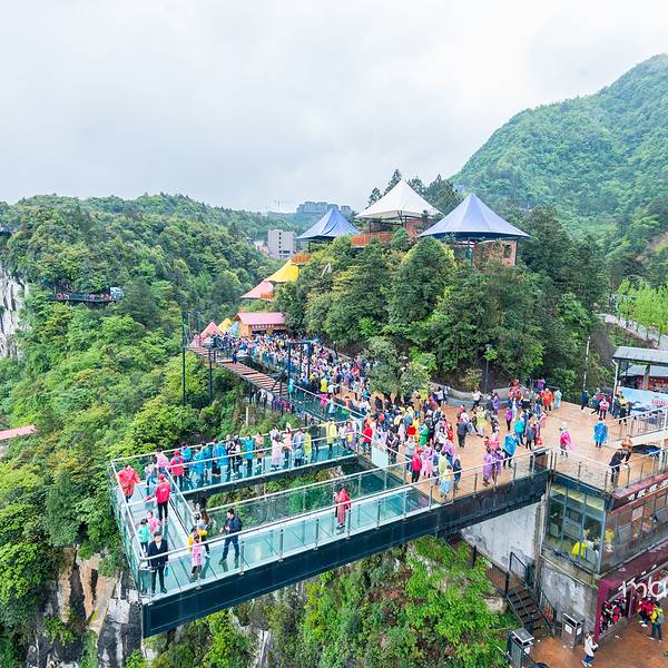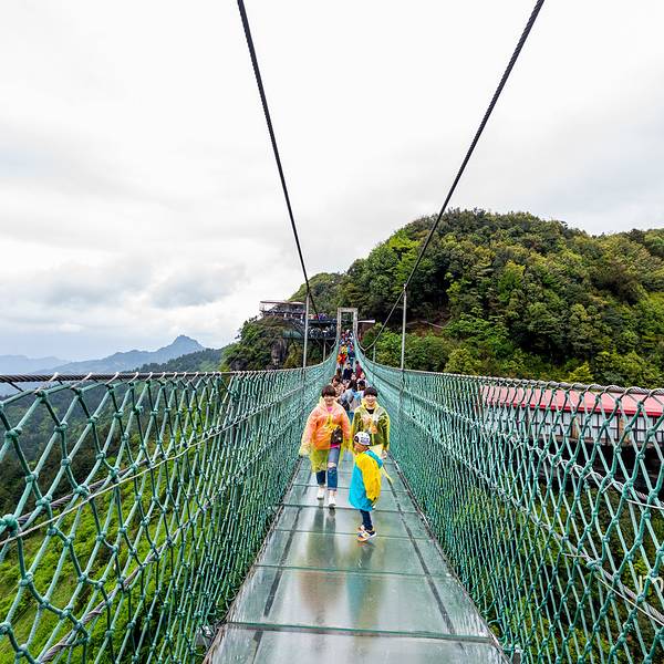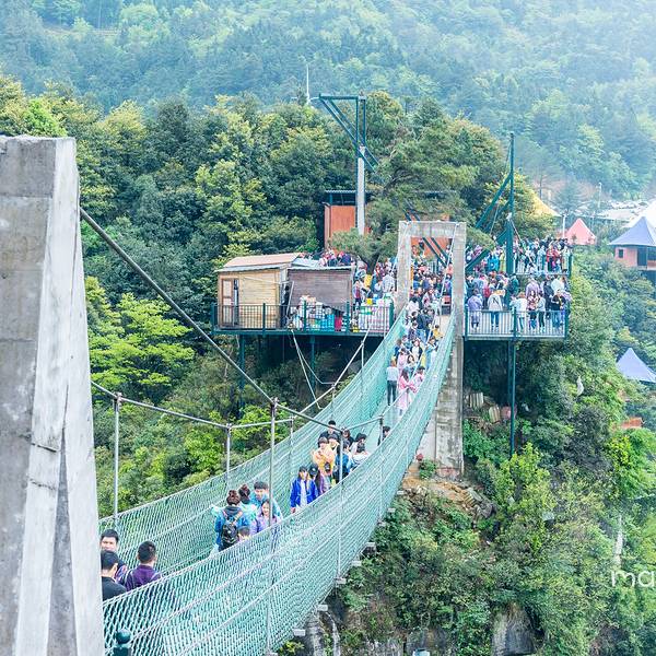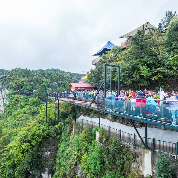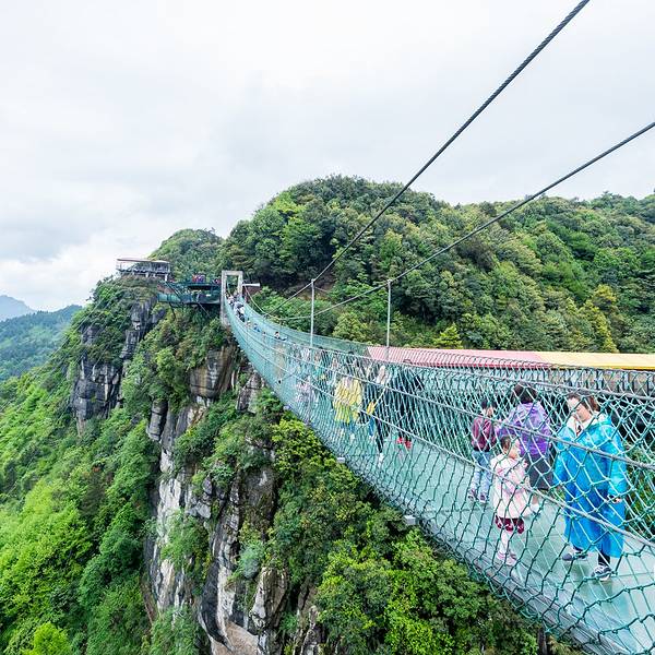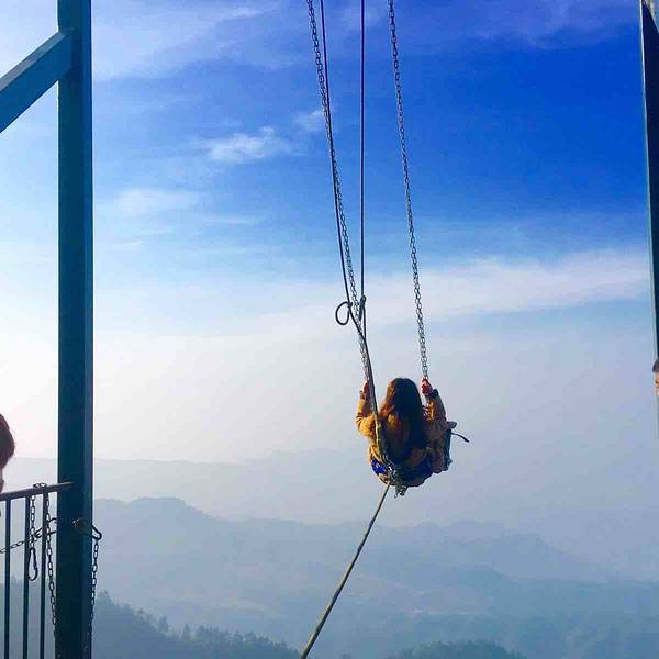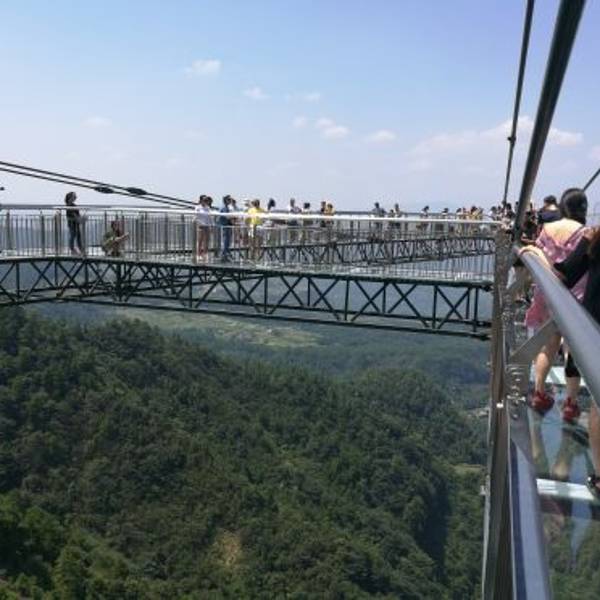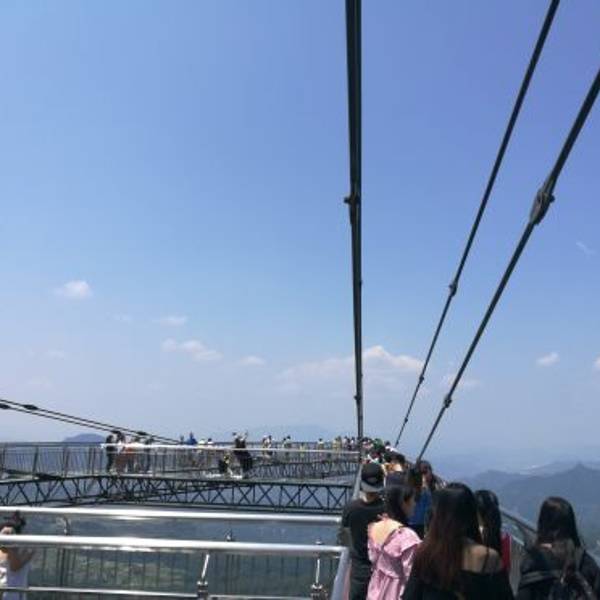 每到周末节假日,你是不是都在考虑应该去哪里玩?即使明明知道这个时候出门会堵人堵车再加上堵心,但仍然会硬着头皮要挤进去,为了什么,还不是因为平时工作太忙、压力太大,终于放假的时候,就想着能出去走走,得到有效的释放和喧嚣,所以现在游乐、竞技、挑战类的地方越来越受到大家的喜爱,这里不仅可以挑战自我,证明自己,也把心中积压已久的不良情绪彻底发泄出来,顿时轻松许多。 位于重庆万盛区黑山之巅的梦幻奥陶纪公园,就是非常好的选择,距重庆主城区约110公里,从重庆主城驱车前往不到2个小时,这里不仅有可供各个年龄段游玩的游乐设施,更有惊险刺激的10大高空项目——天空悬廊、云端廊桥、极限飞跃、高空漫步、步步惊心、悬崖秋千、高空荡桥、玻璃吊桥、高空速滑、丛林飞跃。我已经迫不及待了,就跟着我一个一个去体验吧。 天空悬廊“世界第一天空悬廊”是梦幻奥陶纪最大的特色,它建在近300米的悬崖峭壁之上,桥身全长近200米,悬廊沿悬崖向外挑70米,成“A”字形,桥面铺设全透明玻璃,有一种直插云霄的即视感。是不是只是看着就觉得有点晕了,反正我是。目前国内的高空项目有很多,也去过一些,但当我看到奥陶纪的天空悬廊时,真的有点吓到了。想想自己马上就要去挑战吉尼斯世界纪录的“最长的悬挑空中玻璃走廊”,心中真是即紧张又激动。慢慢随着人流拾阶而上,看着前后左右的人们,虽然互不相识,但感觉大家一起走上这座悬廊,心里顿时觉得踏实了一些。当天天气不太好,上午还一直在下雨,虽然现在雨已渐渐变小,但玻璃廊道上仍然有一点点滑,所以大家走的更加格外小心。大家都一手扶着栏杆,慢慢的向前挪动,我也跟随着大家缓缓向前,我有点恐高,所以一直提醒自己不能往下看,但好奇心又驱动着我偷偷向下瞄了几眼,我的妈呀,吓死宝宝了,突然对“万丈深渊”有了深刻的理解,立马感觉眩晕起来,感觉停住脚步,闭上眼睛缓一缓,想退回去,发现已经走出来一大半,看到旁边的人都在坚持向前,想想还是要继续前进,深吸一口气后,眼神直视前方,挪动着前行。越靠近悬廊尽头,越是会感觉到“人在走,廊在抖”,轻微的晃动都会引起更严重的回应,想想自己已经离崖边有70米的距离,离地面已有300多米,偶买噶,突然发现,世界上最远的距离不是生与死,也不是没有网络,而是我在桥头,你在桥巅,我们相差近70米的距离。虽然一路走的战战兢兢,但当我到达悬廊尽头时,还是感觉自己取得了小小的胜利,似乎也慢慢适应了走在空中的感觉,再往回走时,少了一些恐惧,多了一份惬意,人生不就是在不停的挑战中度过吗?恐惧,更多的时候是来自内心,战胜自己,就已经成功了一半。当你俯看下面的人群时,有没有一点小小的激动和自豪? 极限飞跃 上一张照片里,有没有看到缩小版悬廊旁边堆了很多人,那里就是奥陶纪里另一个人气很高的挑战项目——极限飞跃。悬廊虽然可怕,但毕竟有栏杆可以扶,脚下也有虽然完全透明,但心里还是知道它很坚固的玻璃,而这里,除了腰上那根绳子,真的只能靠自己了。300米的高空,在间距0.8米-2.5米不等的平台之间高空跳远,这玩的绝对是心跳呀,0.8米的距离很容易,就像正常走路一样就过去了,但是你再看看最后一个2.5米的,这么远的距离一定要用力跨出,腿稍微短点都有点悬呀,我光是看着都觉得胆战心惊。最后一个2.5米的间隔后,就是一个栏杆,所以当你奋力跨过时,对面是栏杆可以帮你稳定和缓冲的,很多朋友鼓起勇气,拼命跨过去后,仍心有余悸时,一转身准备返回,这时就傻眼了。因为返回的第一个间隔就是刚才好不容易跨过那个,但是回去可是没有栏杆的咯,万一没跨过,或者冲力太大,停不住脚步,前倾或者左摇右晃,分分钟都有可能被悬在空中,看看这位小姐姐的表情,就知道了。极限飞跃分成了两部分,一边是间隔有大有小的,而另一边则都是间隔比较大的,更适合男生,男生女生这时大多自动分成两边开始排队,但也有个别单子大的女生去挑战,好吧,我在心里给你点个赞,真是厉害。是不是被我说的有点不敢尝试了,不要怕,当你真的遇到困难时,会有小哥哥来解救你的,但是小哥哥也有调皮的一面,看到你已经安全,没有危险时,就会来“调戏”你咯,来解你的鞋带,或者站在上面用力的跳,这位小哥哥,你到底懂不懂怜香惜玉?小姐姐们,能站上去已经很不容易了,就不要再吓唬她们了。请记住这位淘气的小哥哥,下次他在的时候要小心一点点,哈哈哈哈。 悬崖秋千 秋千,在很多人心中,都是小清新,小浪漫的所在,心爱的人,轻轻的推动着秋千,把你送出去,又把你安全的接入怀中。但是在奥陶纪,秋千的浪漫属性已被抹掉,推秋千的工作人员绝对是要把你送上天,再也不要回来的节奏,哈哈,先是把你往后向上拉到与地面垂直,静止几秒钟后,瞬间将你放飞至悬崖上空,最高的时候同样能达到与地面呈90度的瞬间,这时,你有没有要灭了他的想法,哈哈哈。奥陶纪的悬崖秋千现在有4米和8米两种,4米的有两个,8米的只有一个,所以人多的时候8米秋千排队时间会比较长一点,据说,今年还会开一个超级无敌的18米秋千,就在空中悬廊旁边,这从出去到回来的时间,足够回忆此生了。很多朋友在秋千上的时候,想记录下这“美好”的瞬间,手里都拿着手机在拍摄,提醒大家,一定要握紧,握紧,握紧,重要的事情说三遍,否则就要你心爱的手机说拜拜了。看