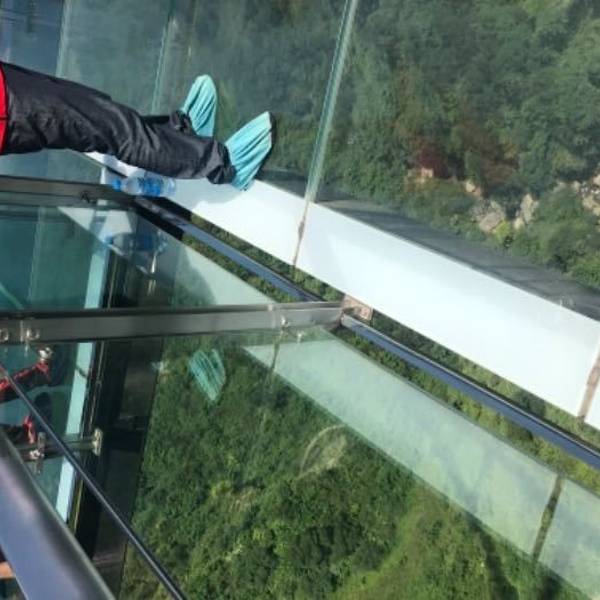1、所有的玻璃项目均需要穿戴特制的防滑鞋套,全方位保护。