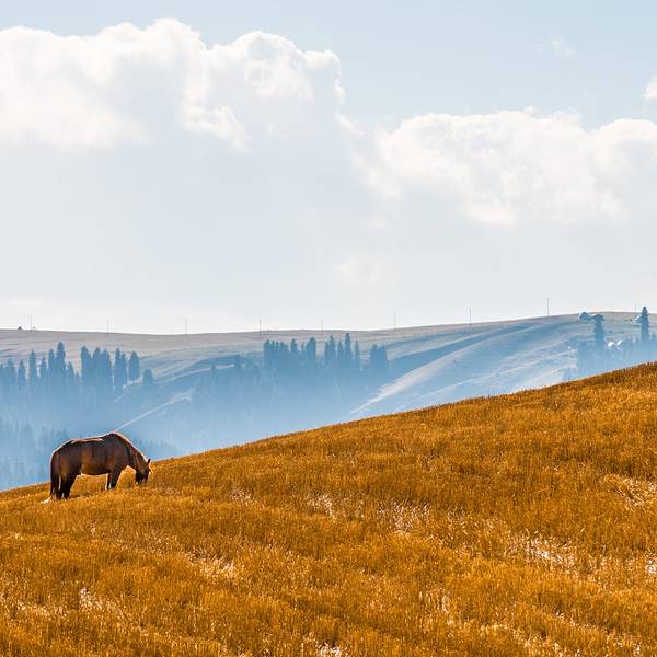 江布拉克距离乌市大概4个小时车程,从乌市出来往西走,经过奇台县城后下高速,再开1个小时就到了。