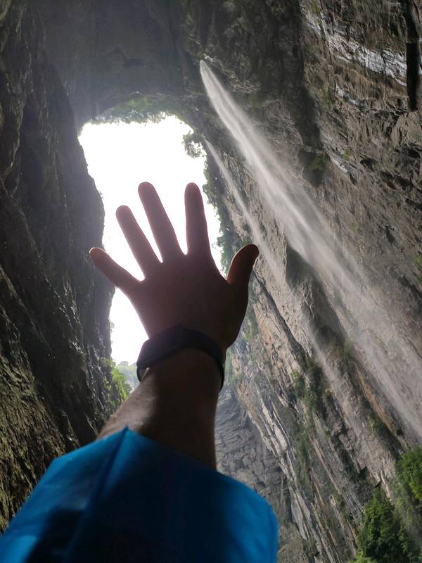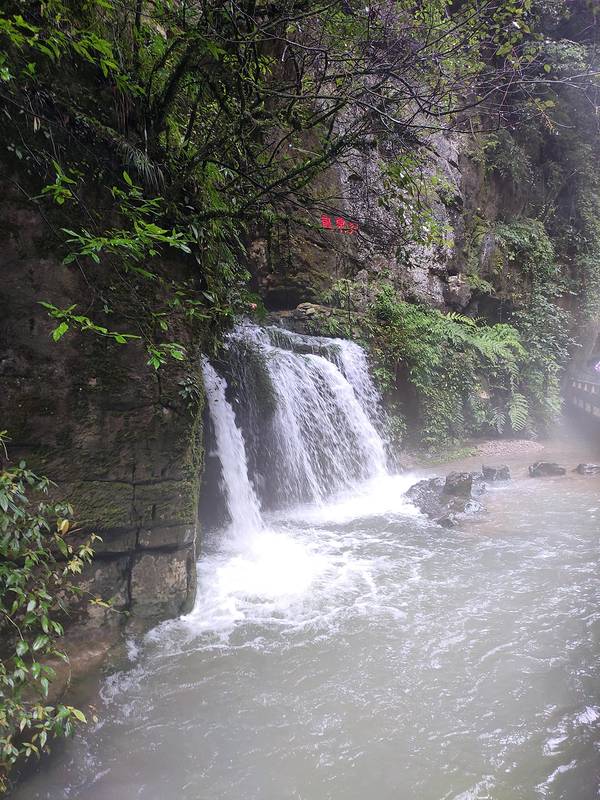 青龙桥。下雨后水流更加湍急。天坑,是不是拍得很有好,很有感觉,自我赞一个。只手遮天,导游说有人这样拍青龙桥天坑,是不是拍得很有好,很有感觉,自我赞一个只手遮天,导游说有人这样拍瀑布黑龙桥,看到龙没说像个大猩猩,我觉得像猫头鹰龙泉洞凉快下雨后水流更加湍急飞流直下三千尺