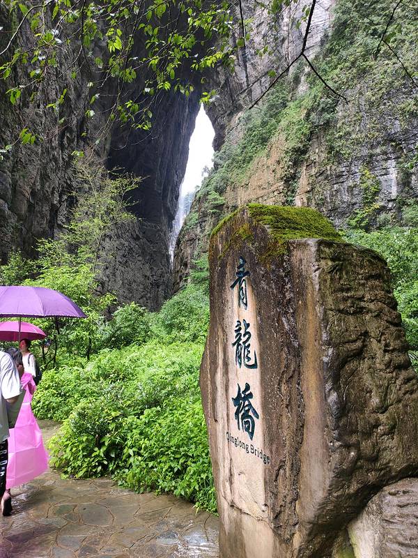 ...石桥,最大的特色就是那个山洞,像一把刀,很多游客在那边摆一个手握青龙月牙刀的姿势,非常的有意思青龙桥是武隆天生三桥第二座天生石桥,最大的特色就是那个山洞,像一把刀,很多游客在那边摆一个手握青龙月牙刀的姿势,非常的有意思。
