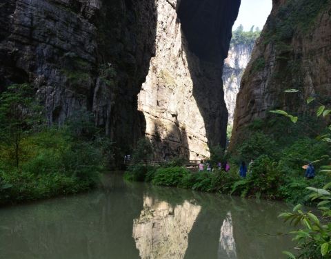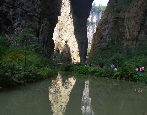 青龙桥是武隆天生三桥中的一座。很适合拍照青龙桥是武隆天生三桥中的一座。 青龙桥下方的桥孔,形状像是一把大刀,而且下方有一个水潭,刀的倒影在水潭上看的也很清晰。很适合拍照!