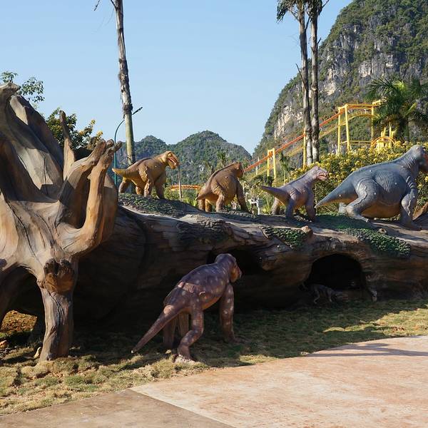 龙谷湾旅游休闲度假区坐落于南宁空港经济区、中国“恐龙之乡”广西扶绥县,置身于风景优美的花山自然风貌地区,群山环绕,绿波万顷。度假区距离南宁市45公里,行程约50分钟;距离南宁南宁吴圩国际机场22公里,行程约25分钟,全程高速公路贯通,交通十分便利。 龙谷湾旅游休闲度假区是以广西扶绥挖掘的“一窝三龙”恐龙化石为依托,按国家5A级景区标准建设,将科普探索、旅游观光、游乐体验相结合。全智能电子化覆盖服务,一手掌控的动态游乐体验,以强大科技复原恐龙与古生物形象,通过视觉的盛宴、动感的激情,为您揭开五亿六千万年前的生命奥秘,倾力打造欢乐殿堂。 度假区占地3000亩,拥有远古的呼唤、恐龙谷、动感地带、儿童王国、多媒体体验中心、冷杉思有度假酒店六大功能板块。园区游乐项目均运用国际先进科技手段打造,其中包括国内仅有的一台飞龙过山车,南方引进的4D轨道车电影——恐龙危机,史前世界实景打造的恐龙漂流,新型动感座椅与裸眼3D技术相结合的360度球幕电影院,更有儿童城堡、激流勇进、疯狂大摆锤、太空穿梭机等三十余项震撼体验的游乐项目。 园区中还布置了上千头形态各异的恐龙与古生物,大部分以机械内核制作,创意设计水下仿真机械恐龙,让恐龙与古生物以鲜活的姿态“重生”于您的眼前,再现三叠纪、侏罗纪和白垩纪恐龙争霸的恢弘场景。震撼人心的视觉体验,惊险刺激的冒险历程,这里将为您完整呈现。园区还拥有度假酒店,优美的环境、舒适的客房、宾至如归的服务,让您流连忘返。 来观赏五亿六千万年前的盛况,来倾听那远古生灵热烈的呼唤,来感受你脚下的土地里埋藏的磅礴与浩瀚,来吧,这就是龙谷湾旅游休闲度假区 !
