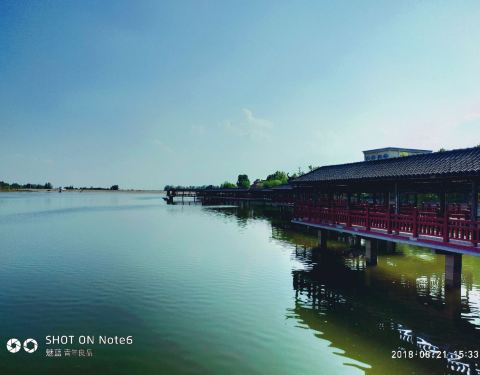 第二次来彭墩,上次应该在两年前,这次来变化很大,外面在修路,一路坑坑洼洼,估计影响很大。景区售票处已经关门,无需买票,只用交10元停车费,车可以开进景区。景区里破败不堪,商店全部关门,几乎看不到一个人。让人欣喜的是鸽子园和孔雀园还在,餐厅还在,长廊还在,尤其是漂亮的湖水还在,真美!