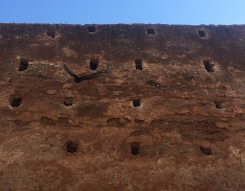 哈桑塔围墙上居住的鸽子 围墙上有很多横向排列还算有规律的洞,据说是用来修缮围墙的,现在从501~屋顶观景大露台,都住着鸽子,有的鸽子还占了不止一套房,俨然成了鸽子公寓 5⃣ 大鸽子飞出去浪,嗷嗷待哺的几个小鸽子在窗口恋恋不舍