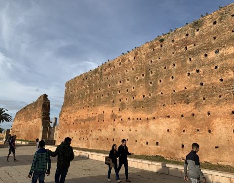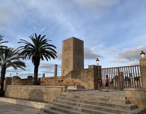 2019年3月1日来的。 哈桑塔可以说是拉巴特最重要的景点,这是哈桑大清真寺的遗迹,展现了历史上摩洛哥国王的雄心。 哈桑大清真寺是拉巴特最古老的清真寺,也曾是摩洛哥最大的清真寺。哈桑塔就是这座清真寺的宣礼塔,当时也是全摩洛哥最高的宣礼塔。这个建筑工程非常浩大,兴建这座清真寺的曼苏尔国王还等到工程竣工就离开人世。可惜后来一场大地震把这座清真寺毁掉了,只留下300多根断柱和哈桑塔。 如今这里变成了一个广场,也是拉巴特市民的主要休闲场所。周末的时候,这里有小孩子喂鸽子、年轻人踢足球、情侣好友拍照,人气很旺。 哈桑塔是典型的摩洛哥式样的宣礼塔,造型与西亚地区的圆筒状圆锥顶的宣礼塔不同,是四方柱形塔身加金字塔形塔尖。广场上的断柱高矮不一,比较矮的一些是可以让人爬上去的,许多人会站在断柱上拍照。