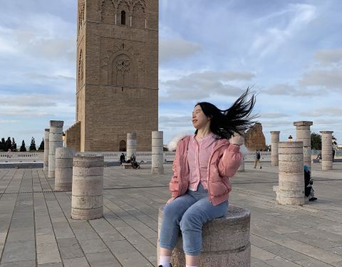 景色不错 与皇陵一起的 从柱子的规模看 修建成的话 不亚于哈桑二世清真寺 修了半截的宣礼塔 感受到修建的气质 边上有块石头 估计是地震后留下的证据