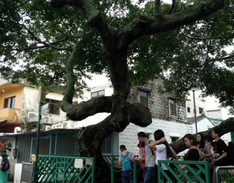 从码头下来经过榕树湾大道,大概也就是走几百米就能够走到天后庙这边的,不要走进去山了道路上面去。 门口旁边的确是有一颗非常大的榕树,我想就是因为这个,所以这边叫做榕树湾。 天后庙这边不算是特别的大,但...