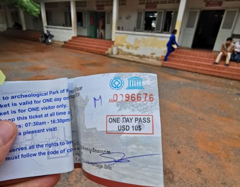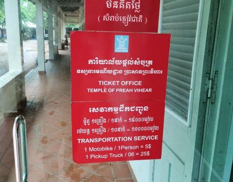 之后从山脚售票处到山顶上有很长的距离,要另外包景区的车的。他们仨坐驾驶室里,我和司机坐后面之后我们就到达了柏威夏古寺。在这里游览是这样的,首先在门口买门票,门票是凭护照免费的,售票员会简单登记护照信息。之后从山脚售票处到山顶上有很长的距离,要另外包景区的车的。摩托车5美元/人,皮卡25美元/...之后我们就到达了柏威夏古寺。在这里游览是这样的,首先在门口买门票,门票是凭护照免费的,售票员会简单登记护照信息。之后从山脚售票处到山顶上有很长的距离,要另外包景区的车的。摩托车5美元/人,皮卡25美元/辆。人多就包个皮卡吧,驾驶室内起码能做3个人,后面坐4个人不成问题。 展开