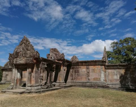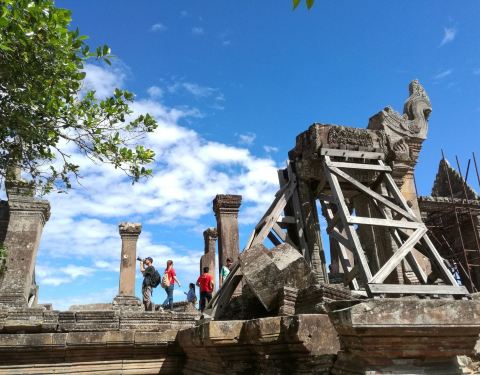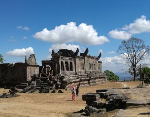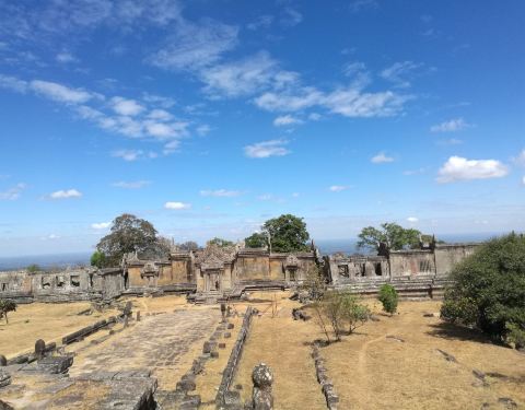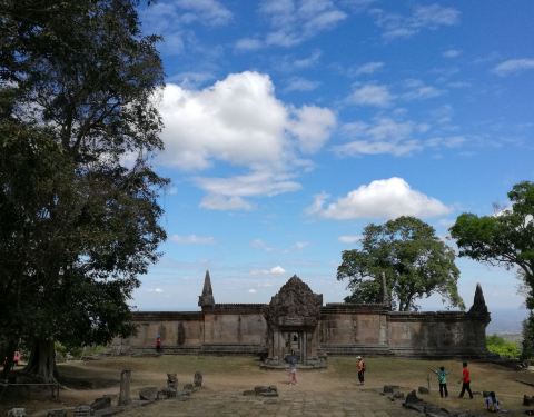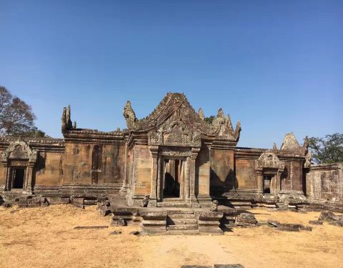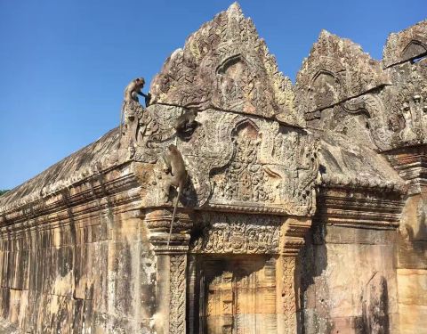 建筑古朴雄浑,建在泰柬边境的山脊上,分四进院落,第四层外墙后就是悬崖,地势险要,映着蓝天白云,很壮观非常值得一去。建筑古朴雄浑,建在泰柬边境的山脊上,分四进院落,第四层外墙后就是悬崖,地势险要,映着蓝天白云,很壮观。可从暹粒包车前往,路上可见柬埔寨乡间风情,山势较陡,坐皮卡上下山也很有趣,下山宛...非常值得一去。建筑古朴雄浑,建在泰柬边境的山脊上,分四进院落,第四层外墙后就是悬崖,地势险要,映着蓝天白云,很壮观。可从暹粒包车前往,路上可见柬埔寨乡间风情,山势较陡,坐皮卡上下山也很有趣,下山宛如坐过山车。山上还有猴群,也是一景。 展开