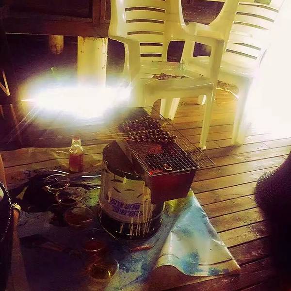 真的不错哦!吃完回去,老鬼和两个南宁妹子,居然在烧烤,看见我们了,就叫着一起烧烤!老鬼真实在