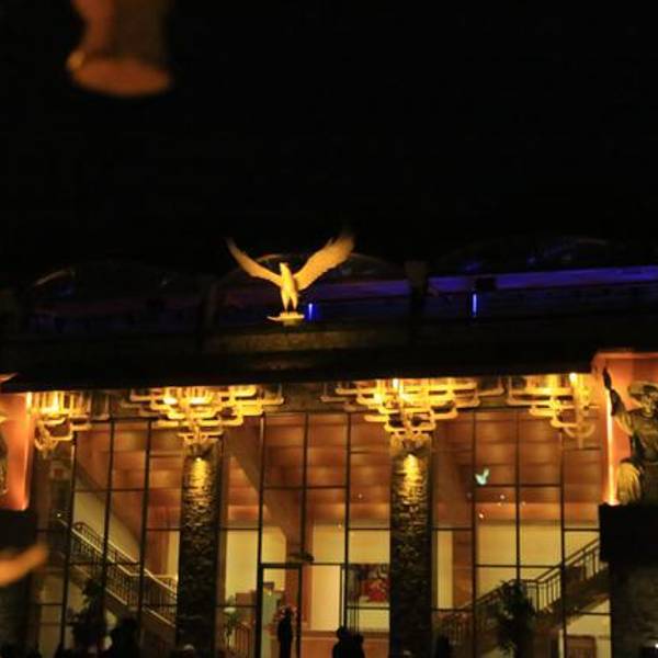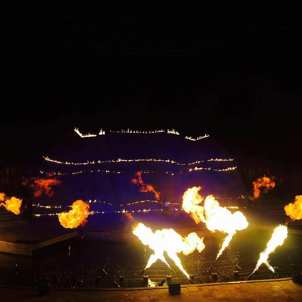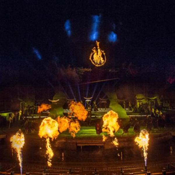 ”四周也都是各种惊叹的声音。整个村寨如同火红的太阳撕破整片夜空演出开始了,没多久就听豪子叫到:“卧槽!”四周也都是各种惊叹的声音。只见黑夜中一只巨大的金色巨鹰沿着寨子环绕一圈后(开始我还以为是凤凰),飞到了舞台中间巨大的水幕上如同悬立在空中。随着古老高亢彝语山...演出开始了,没多久就听豪子叫到:“卧槽!”四周也都是各种惊叹的声音。只见黑夜中一只巨大的金色巨鹰沿着寨子环绕一圈后(开始我还以为是凤凰),飞到了舞台中间巨大的水幕上如同悬立在空中。随着古老高亢彝语山歌响起,有一种洪荒的史诗感在我心里弥漫,虽然是第二次看,依旧那么震撼。漆黑的山坡上开始出现点点光芒,如同一双双眼睛,仔细一看是彝族汉子们手举牛头骨站在四周,像是在举行什么仪式。接着又是一阵惊呼,舞台四处开始迸发出红色的火焰,巨大的热量远在观众席上的我们都能完全的感受到。整个村寨如同火红的太阳撕破整片夜空...... 展开