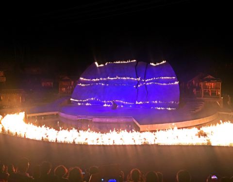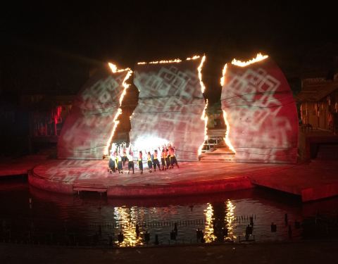 回到西昌在阿惹妞民俗村寨观看火秀演出。火在水的上面燃烧非常神奇。坐在观众席都能感受到火的温度回到西昌在阿惹妞民俗村寨观看火秀演出。