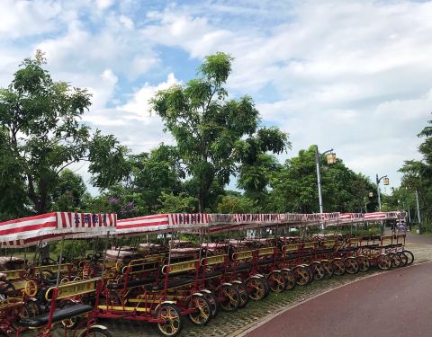 华阳湖湿地公园位于东莞,是一个开放式的公园,公园以湖为中心,开设很多休闲的绿地,是个周末聚集活动好地方,门口设有租自行车,50/辆。