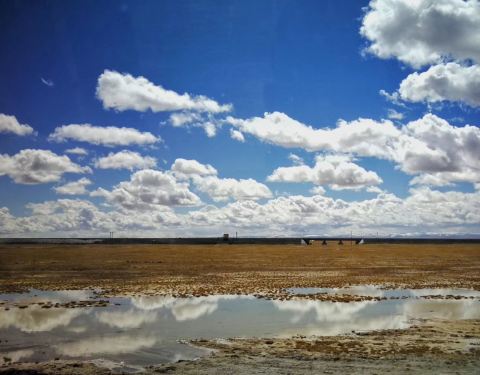 饮用水也没有,只能到离这几十公里外的不冻泉去取那里的泉水回来。我们住的索南达杰保护站对面就是天路:青藏铁路。